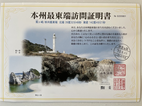 - 本州最東端の魹ヶ崎を訪問される方は、こちらで証明書を入手するのがオススメ!