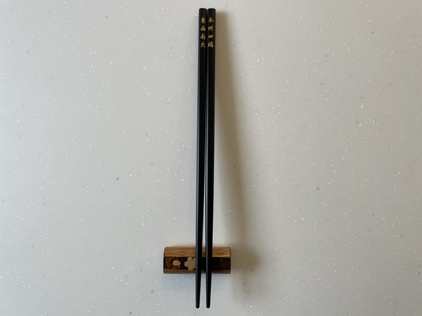 ①住所、氏名、年齢、電話番号、箸の希望の色(黒または赤)を明記した書面